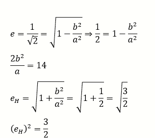 Let $\frac{x^2}{a^2}+\frac{y^2}{b^2}=1, a>b$ be an ellipse, whose eccentricity is $\frac{1}{\sqrt{2}}$ and the length of the latus rectum is $\sqrt{14}$. Then the square of the eccentricity of $\frac{x^2}{a^2}-\frac{y^2}{b^2}=1$ is :