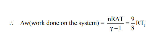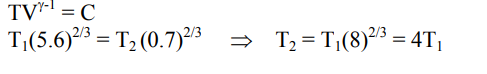 5.6 liter of helium gas at STP is adiabatically compressed to 0.7 liter. Taking the initial temperature to be $\mathrm{T}_1$, the work done in the process is