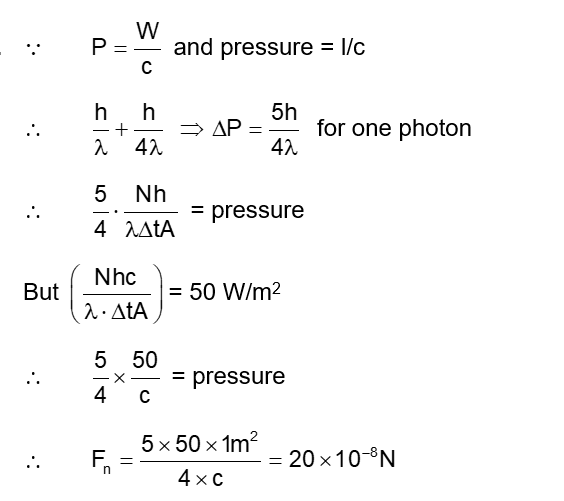 $50 \mathrm{~W} / \mathrm{m}^2$ energy density of sunlight is normally incident on the surface of a solar panel. Some part of incident energy ( $25 \%$ ) is reflected from the surface and the rest is absorbed. The force exerted on $1 \mathrm{~m}^2$ surface area will be close to