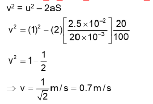 A bullet of mass 20 g has an initial speed of $1 \mathrm{~ms}^{-1}$, just before it starts penetrating a mud wall of thickness 20 cm . If the wall offers a mean resistance of $2.5 \times 10^{-2} \mathrm{~N}$, the speed of the bullet after emerging from the other side of the wall is close to :