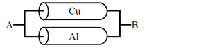 A Copper (Cu) rod of length 25 cm and cross-sectional area 3 mm2 is joined with a similar Aluminium (Al) rod as shown in figure. Find the resistance of the combination between the ends A and B. (Take Resisitivity of Copper $=1.7 \times 10^{-8} \Omega \mathrm{~m}$ Resistivity of Aluminium $=2.6 \times 10^{-8} \Omega \mathrm{~m}$ )