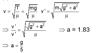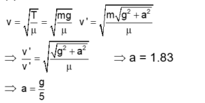 A heavy ball of mass M is suspended from the ceiling of a car by a light string of mass $m(m \ll M)$. When the car is at rest, the speed of transverse waves in the string is $60 \mathrm{~ms}^{-1}$. When the car has acceleration a, the wave-speed increases to $60.5 \mathrm{~ms}^{-1}$. The value of a, in terms of gravitational acceleration g , is closest to
