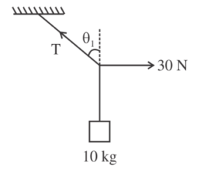 $\begin{aligned} & \mathrm{T} \sin \theta=30 \\ & \mathrm{~T} \cos \theta=100 \\ & \Rightarrow \tan \theta=0.3\end{aligned}$