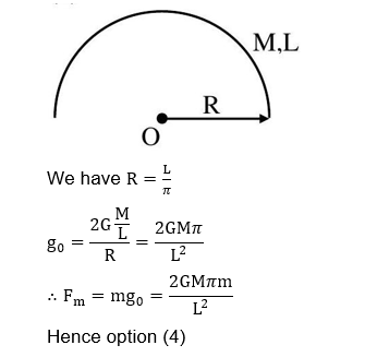 A metal wire of uniform mass density having length L and mass M is bent to form a semicircular arc and a particle of mass m is placed at the centre of the arc. The gravitational force on the particle by the wire is: