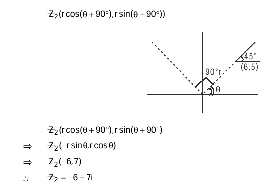 A particle $P$ starts from the point $z_0=1+2 i$, where $i=\sqrt{-1}$. It moves first horizontally away from origin by 5 units and then vertically away from origin by 3 units to reach a point $z_1$. From $z_1$ the particle moves $\sqrt{2}$ units in the direction of the vector $\hat{i}+\hat{j}$ and then it moves through an angle $\frac{\pi}{2}$ in anticlockwise direction on a circle with centre at origin, to reach a point $\mathrm{z}_2$. The point $\mathrm{z}_2$ is given by