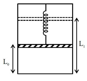 A piston of mass M is hung from a massless spring whose restoring force law goes as ${\rm{F}} = - {\rm{k}}{{\rm{x}}^3}$, where k is the spring constant of appropriate dimension. The piston separates the vertical chamber into two parts, where the bottom part is filled with 'n' moles of an ideal gas. An external work is done on the gas isothermally (at a constant temperature T) with the help of a heating filament (with negligible volume) mounted in lower part of the chamber, so that the piston goes up from a height ${L_0}$ to ${L_1}$ , the total energy delivered by the filament is :(Assume spring to be in its natural length before heating)