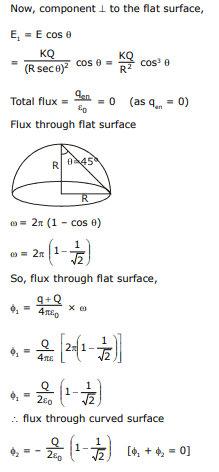 The electric flux passing through the curved surface of the hemisphere is $-\frac{\mathrm{Q}}{2 \varepsilon_0}\left(1-\frac{1}{\sqrt{2}}\right)$