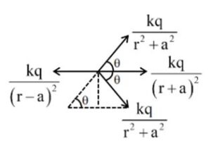 $\frac{{kq}}{{{{{(r-a)}}^{2}}}}=\frac{{kq}}{{{{{(r+a)}}^{2}}}}+\frac{{2kq}}{{\left( {{{r}^{2}}+{{a}^{2}}} \right)}}\cos \theta$