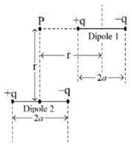 $\frac{{kq}}{{{{{(r-a)}}^{2}}}}=\frac{{kq}}{{{{{(r+a)}}^{2}}}}+\frac{{2kq}}{{\left( {{{r}^{2}}+{{a}^{2}}} \right)}}\cos \theta$