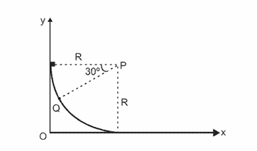 A small block of mass 1 kg is released from rest at the top of a rough track. The track is a circular arc of radius 40 m . The block slides along the track without toppling and a frictional force acts on it in the direction opposite to the instantaneous velocity. The work done in overcoming the friction up to the point $Q$, as shown in the figure below, is 150 J . (Take the acceleration due to gravity, $\mathrm{g}=10 \mathrm{~m} \mathrm{~s}^{-2}$ )