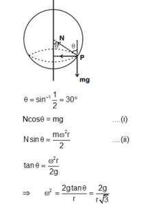 A smooth wire of length $2 \pi r$ is bent into a circle and kept in a vertical plane. A bead can slide smoothly on the wire. When the circle is rotating with angular speed $\omega$ about the vertical diameter AB, as shown in figure, the bead is at rest with respect to the circular ring at position P as shown. Then the value of $\omega^2$ is equal to: