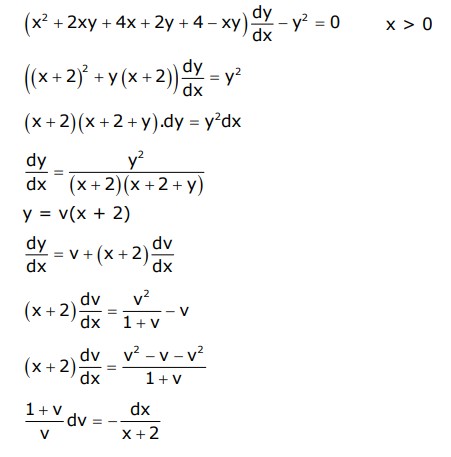 A solution curve of the differential equation $\left(x^2+x y+4 x+2 y+4\right) \frac{d y}{d x}-y^2=, x>0$ passes through the point $(1,3)$. Then the solution curve