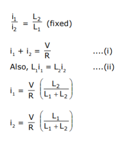 A source of constant voltage $V$ is connected to a resistance $R$ and two ideal inductors $L_1$ and $L_2$ through a switch S as shown. There is no mutual inductance between the two inductors. The switch $S$ is intially open. At $t=0$, the switch is closed and current begins to flow. Which of the following options is/are correct?