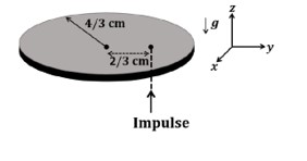 A thin circular coin of mass 5 gm and radius $4 / 3 \mathrm{~cm}$ is initially in a horizontal $x y$-plane. The coin is tossed vertically up ( $+z$ direction) by applying an impulse of $\sqrt{\frac{\pi}{2}} \times 10^{-2} \mathrm{~N}$-s at a distance $2 / 3 \mathrm{~cm}$ from its center. The coin spins about its diameter and moves along the $+_z$ direction. By the time the coin reaches back to its initial position, it completes $n$ rotations. The value of $n$ is $\_\_\_\_$ .