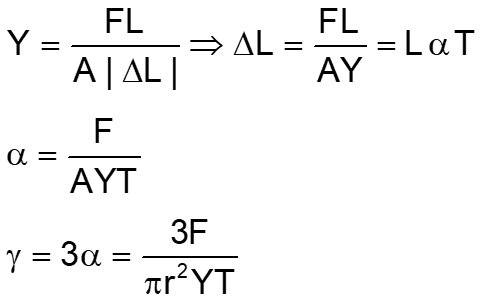 A uniform cylindrical rod of length L and radius r, is made from a material whose Young’s modulus of Elasticity equals Y. When this rod is heated by temperature T and simultaneously subjected to a net longitudinal compressional force F, its length remains unchanged. The coefficient of volume expansion, of the material of the rod, is (nearly) equal to: