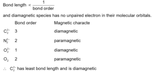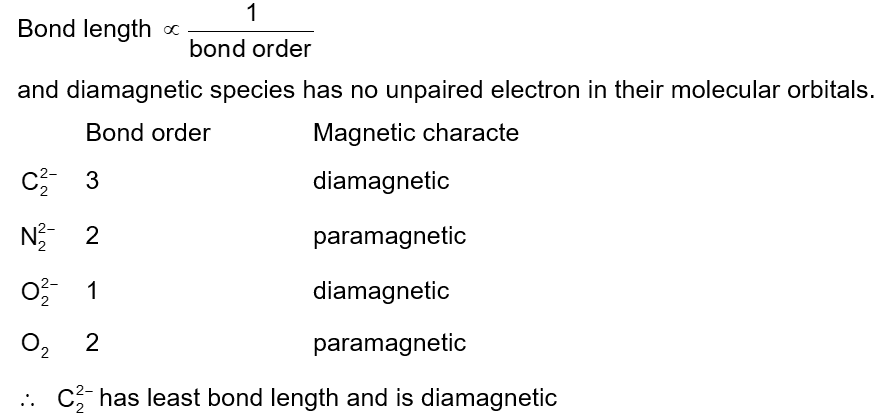 Among the following molecules/ions, $$ \mathrm{C}_2^{2-}, \mathrm{N}_2^{2-}, \mathrm{O}_2^{2-}, \mathrm{O}_2 $$ Which one is diamagnetic and has the shortest bond length?