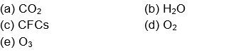Among the gases (a) - (e), the gases that cause greenhouse effect are