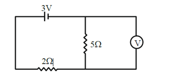As shown in the figure, the voltmeter reads 2 V across $5 \Omega$ resistor. The resistance of the voltmeter is $\_\_\_\_$ $\Omega$.