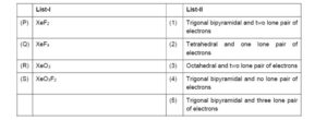 Based on VSEPR model, match the xenon compounds given in List-I with the corresponding. geometries and the number of lone pairs on xenon given in List-Il and choose the correct option.