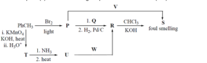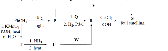 $\mathrm{W}=\mathrm{LiAlH}_4, \mathrm{~V}=\mathrm{AgCN}$
