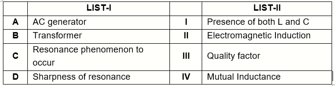 Match the List–I with List–II.