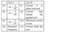 Match List-I with List-II : Choose the correct answer from the options given below :