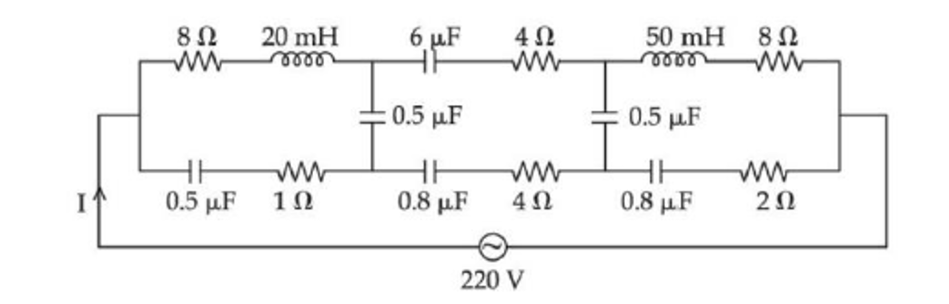 The effective current I in the given circuit at very high frequencies will be ____A.
