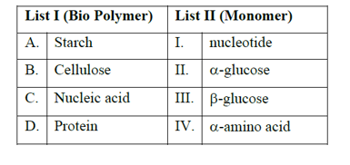 Match List I with List II Choose the correct answer from the options given below...