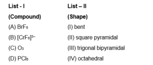 Match List - I with List - II. Choose the correct answer from the options given...