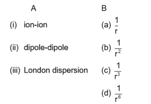 Match the type of interaction in column A with the distance dependence of their interaction energy in column B