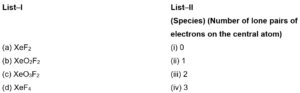 Match List–I with List–II : Choose the most appropriate answer from the options...
