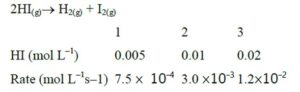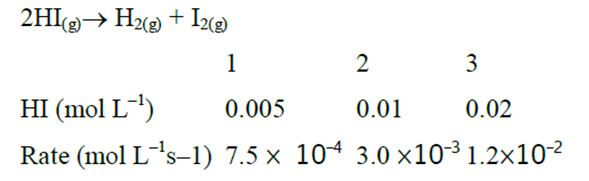 Consider the following data for the given reaction $2 \mathrm{HI}_{(\mathrm{g})} \rightarrow \mathrm{H}_{2(\mathrm{~g})}+\mathrm{I}_{2(\mathrm{~g})}$ The order of...