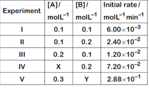 The results given in the below table were obtained during kinetic studies of the following reaction $2 A+B \rightarrow C+D$