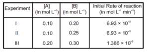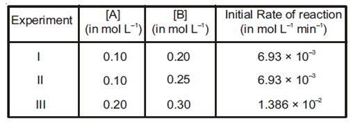 The following results were obtained during kinetic studies of the reaction ; $2 \mathrm{~A}+\mathrm{B} \rightarrow$ Products