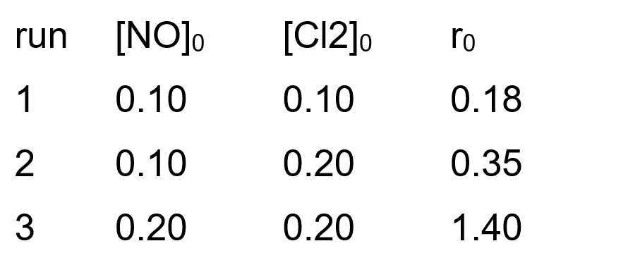 $2 \mathrm{NO}(\mathrm{g})+\mathrm{Cl}_2(\mathrm{~g}) \rightleftharpoons 2 \mathrm{NOCl}(\mathrm{s})$ This reaction was studied at $-10^{\circ} \mathrm{C}$ and the following data was obtained