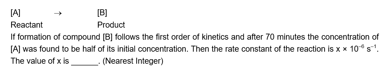For the given first order reaction $$ A \rightarrow B $$ the half life of the reaction is 0.3010 min . The ratio of the...