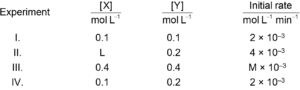 The reaction between X and Y is first order with respect to X and zero order with respect to Y.