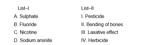 Match List I with List II. Choose the correct answer from the options given below: