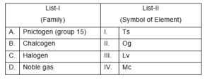Match the LIST-I with LIST-II