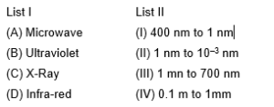 Match List I with List II of electromagnetic waves with corresponding wavelength range:Choose the correct answer...