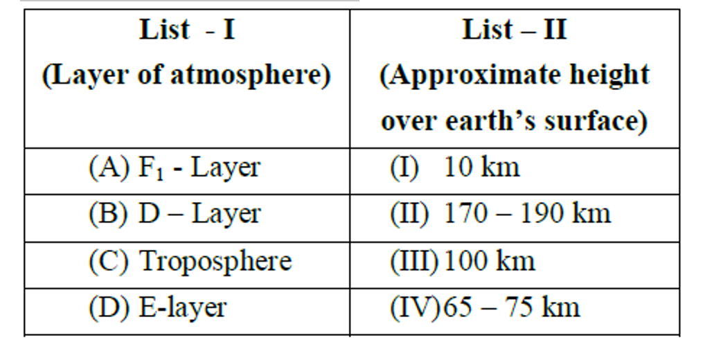 Match List – I with List – II Choose the correct answer from...