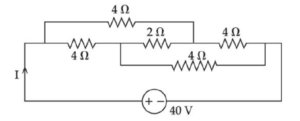 A battery of 6 V is connected to the circuit as shown below. The current I drawn from the battery is