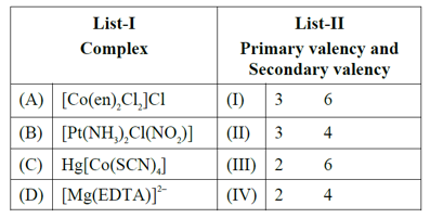Match List - I with List - II. Choose the correct answer from the options given below : JEE MainChemistryEasy