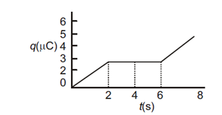 Figure shows charge (q) versus voltage (V) graph for series and parallel combination of two given capacitors. The capacitances are