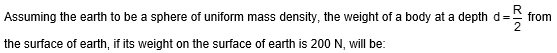 At a certain depth "d" below surface of earth, value of acceleration due to gravity becomes four times that of its value at a height...