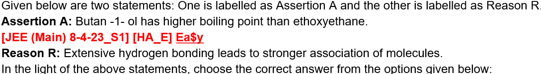 Given below are two statements: One is labelled as Assertion A and the other is labelled as Reason R.