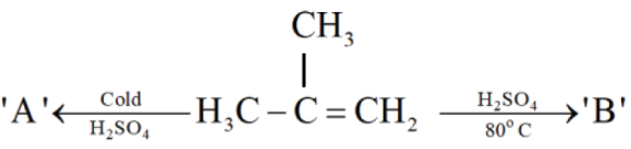 2-Methyl propyl bromide reacts with C2H5O– and gives 'A' whereas on reaction with C2H5OH it gives 'B'. The mechanism followed in these reactions and the...