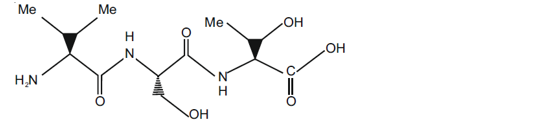 The correct sequence of amino acids present in the tripeptide given below is : The given tripeptide contains.