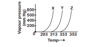A graph of vapour pressure and temperature for three different liquids X, Y, and Z is shown below JEE MainChemistryMedium