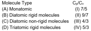 Match the $\mathrm{C}_{\mathrm{p}} / \mathrm{C}_{\mathrm{v}}$ ratio for ideal gases with different type of molecules